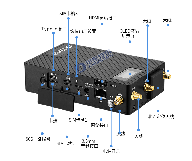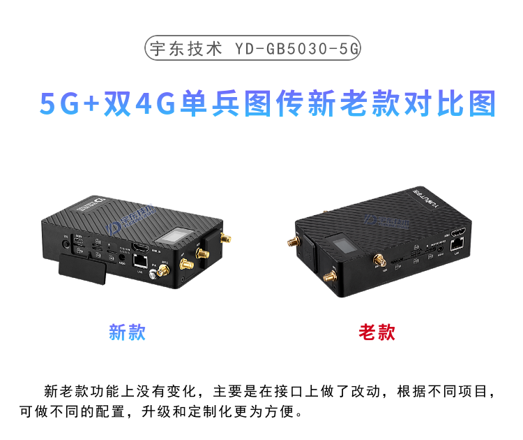 YD-GB5030-5G單兵圖傳,具備三個SIM卡槽,同時支持一個5G網(wǎng)絡和兩個4G網(wǎng)絡, 5G便攜式多卡高清視頻終端采用嵌入式系統(tǒng)架構,采用高性能H.265編解碼處理器設計。設備支持視頻采集、編碼壓縮、傳輸、雙向對講功能。