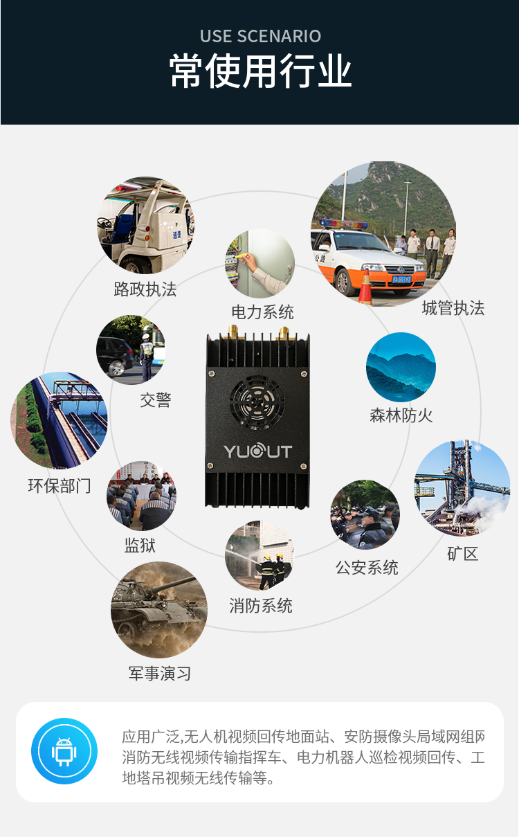 基于 OFDM 技術(shù),圖數(shù)一體無人機圖傳設(shè)備。
