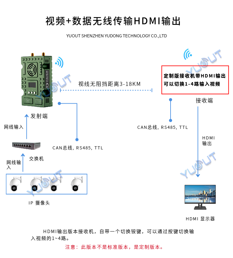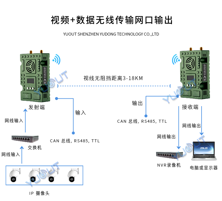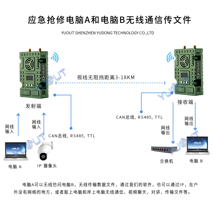 無(wú)線傳輸距離:非視距:300-900 米 地面視距:2-18 公里 |