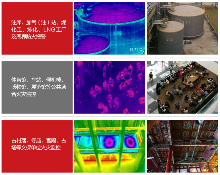 可在熱圖像上設置測溫點或測溫區域,檢測和顯示溫度:點測溫、區域測溫、全屏測溫 |