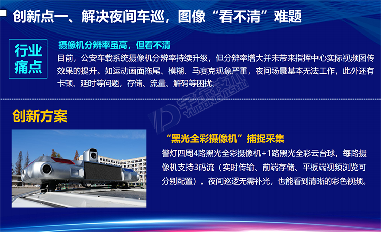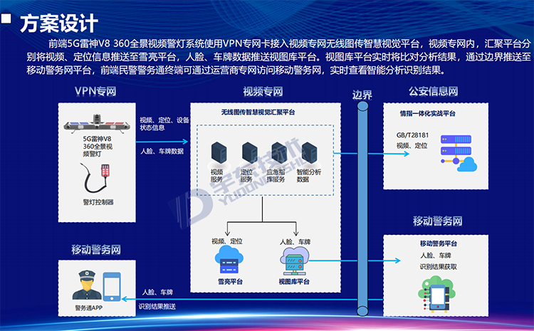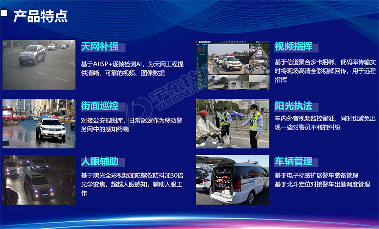 YD-CZ3600-NS型5G雷神V8 360全景視頻警燈系統(tǒng)是針對警用執(zhí)法、刑偵和應(yīng)急指揮開發(fā)的智能警用裝備。產(chǎn)品可部署在車輛等移動載體上,能夠?qū)囕v周邊人員特征(面部、體型、動作)、車輛特征(車牌、車型、顏色)以及移動終端(手機(jī)、PAD等)的關(guān)鍵信息進(jìn)行采集。通過智能分析、比對技術(shù),對人員(性別、年齡、人種)、車輛(車牌號、車牌顏色、車型)信息進(jìn)行分析、甄別,實現(xiàn)對重點監(jiān)管目標(biāo)的提前預(yù)警,同時還可以通過5G/4G等網(wǎng)絡(luò)接入公安應(yīng)急指揮調(diào)度平臺,實現(xiàn)前端警力的調(diào)度、指揮以及對突發(fā)事件的應(yīng)急處置。產(chǎn)品可應(yīng)用于警用大數(shù)據(jù)采集、黑名單布控、人員違法抓拍、武裝押運監(jiān)管等場景。