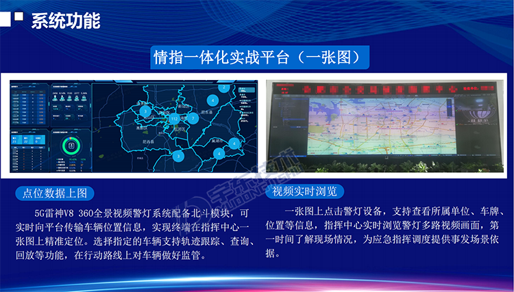 5G雷神V8 360全景視頻警燈系統(tǒng)是針對警用執(zhí)法、刑偵和應(yīng)急指揮開發(fā)的智能警用裝備。產(chǎn)品可部署在車輛等移動載體上,能夠?qū)囕v周邊人員特征、車輛特征的關(guān)鍵信息進(jìn)行采集。通過智能比對技術(shù),對人員、車輛信息進(jìn)行分析、甄別,實現(xiàn)對重點監(jiān)管目標(biāo)的提前預(yù)警,同時還可以通過5G/4G等網(wǎng)絡(luò)接入公安應(yīng)急指揮調(diào)度平臺,實現(xiàn)前端警力的調(diào)度、指揮以及對突發(fā)事件的應(yīng)急處置。產(chǎn)品可應(yīng)用于警用大數(shù)據(jù)采集、黑名單布控、人員違法抓拍、武裝押運監(jiān)管等場景。